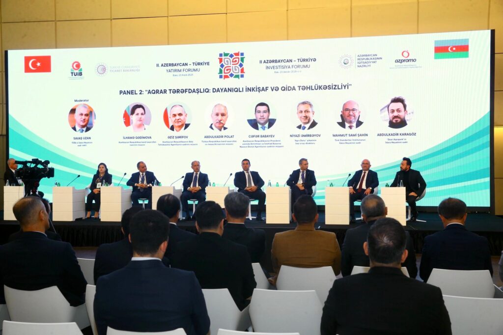 Azerbaycan’ın başkenti Bakü’de düzenlenen 2. Türkiye–Azerbaycan Yatırım Forumu gerçekleştirildi. Forum kapsamında düzenlenen “Tarımsal İş Birliği: Sürdürülebilir Kalkınma ve Gıda Güvenliği” başlıklı panelde, Türkiye ve Azerbaycan’ın tarım alanındaki deneyimleri ile iş birliği imkânları ele alındı.