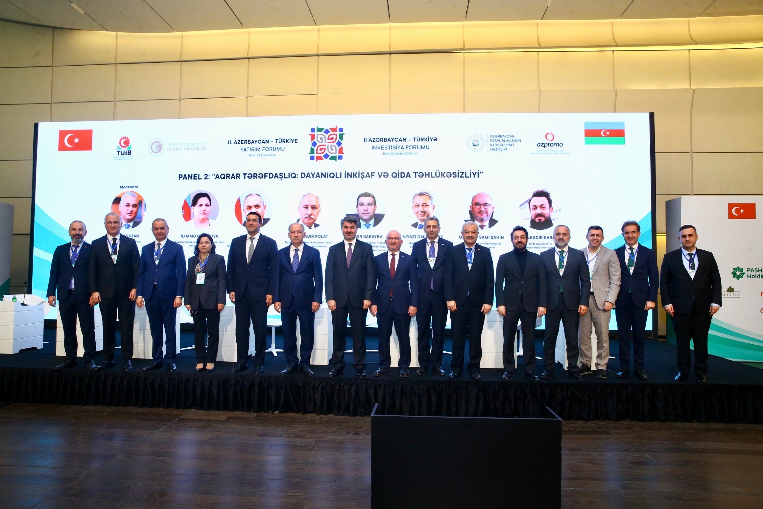 Azerbaycan’ın başkenti Bakü’de düzenlenen 2. Türkiye–Azerbaycan Yatırım Forumu gerçekleştirildi. Forum kapsamında düzenlenen “Tarımsal İş Birliği: Sürdürülebilir Kalkınma ve Gıda Güvenliği” başlıklı panelde, Türkiye ve Azerbaycan’ın tarım alanındaki deneyimleri ile iş birliği imkânları ele alındı.