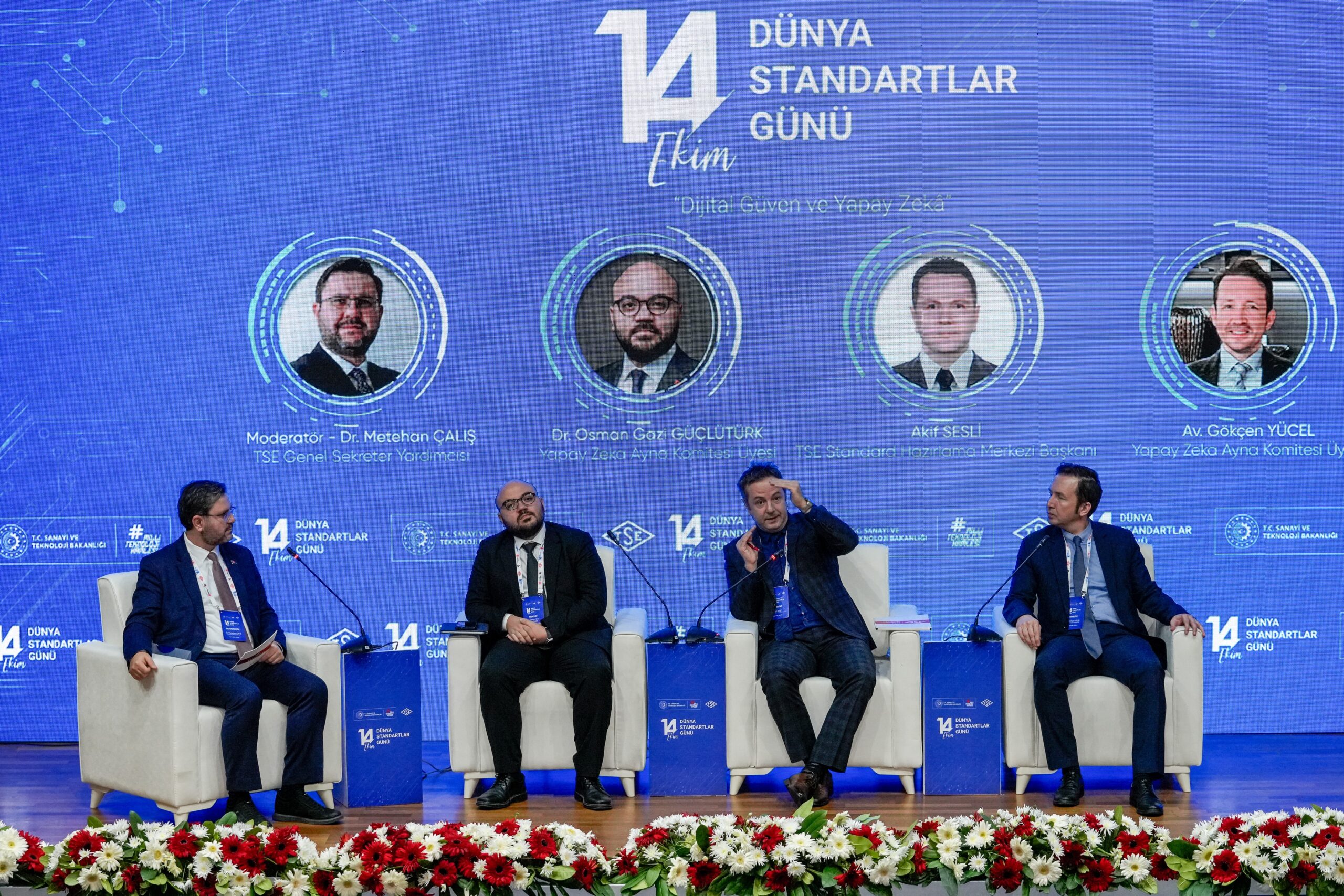 Açılış Konuşmalarının ardından TSE Genel Sekreter Yardımcısı Dr. Metehan Çalış’ın moderatörlüğünde “Dijital Güven ve Yapay Zekâ” Paneline geçildi. Panelde, Yapay Zeka Ayna Komitesi Üyesi Dr. Osman Gazi Güçlütürk ve Av. Gökçen Yücel ile TSE Standart Hazırlama Merkezi Başkanı Akif Sesli, yapay zeka ve standartların önemi üzerine değerlendirmelerde bulundu.