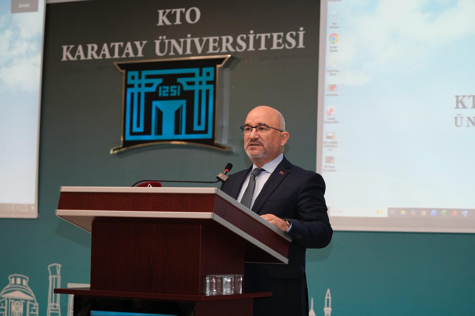 Başkan Şahin, KTO Karatay Üniversitesi’nde düzenlenen programda yaptığı konuşmada, günümüz üretim anlayışının değiştiğine dikkat çekti. Şahin, “Bugünün dünyasında sadece üretmek yetmiyor. Dünya artık bizden sorumlu üretim istiyor. Çevreye duyarlı, enerjiyi verimli kullanan, kaynaklarını ölçen ve yöneten işletmeler öne çıkıyor.” dedi.